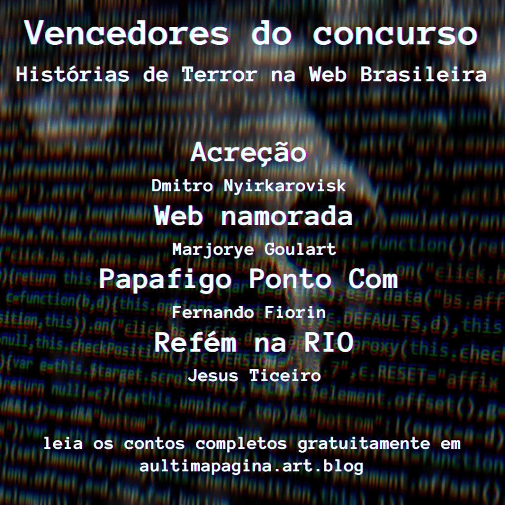 - Os contos devem ser de terror e devem, obrigatoriamente, falar sobre a internet brasileira e estar relacionado com a nossa cultura online. Qualquer conto fora dessa regra será desconsiderado.